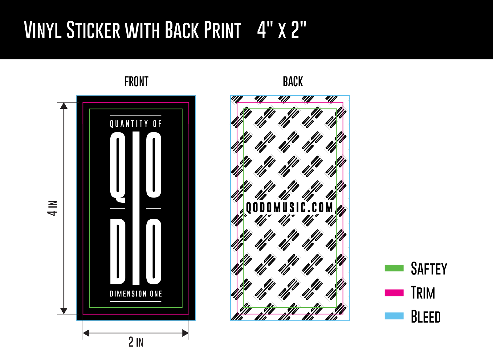 Sticker specs include a 2 color gloss front with 1 color print on the sticker backing. A version of the QODO logo lockup that omits the small type, suited for small scales, is used on the backing.
