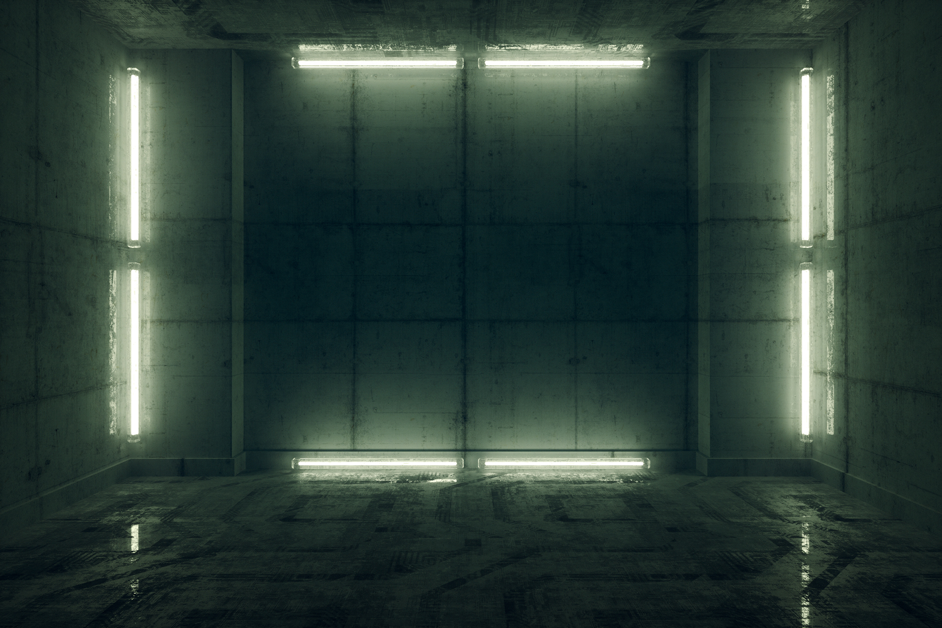 Being a fan of horror movies, both the musical artist and I felt this piece should be dark and ominous. After a few rounds of comps, I felt this piece was ideal, showing a bare,  modernly minimal cell / holding area in a dystopian looking bunker complex. The blood indicates something unpleasant must have occurred.
